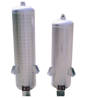 PX型排氣消聲器,PX指小孔消聲器(小孔型),適用于高溫高壓,無消音器棉填料,消音器四周均為是小孔,氣體從 底部接管進(jìn)入,從四周排出。